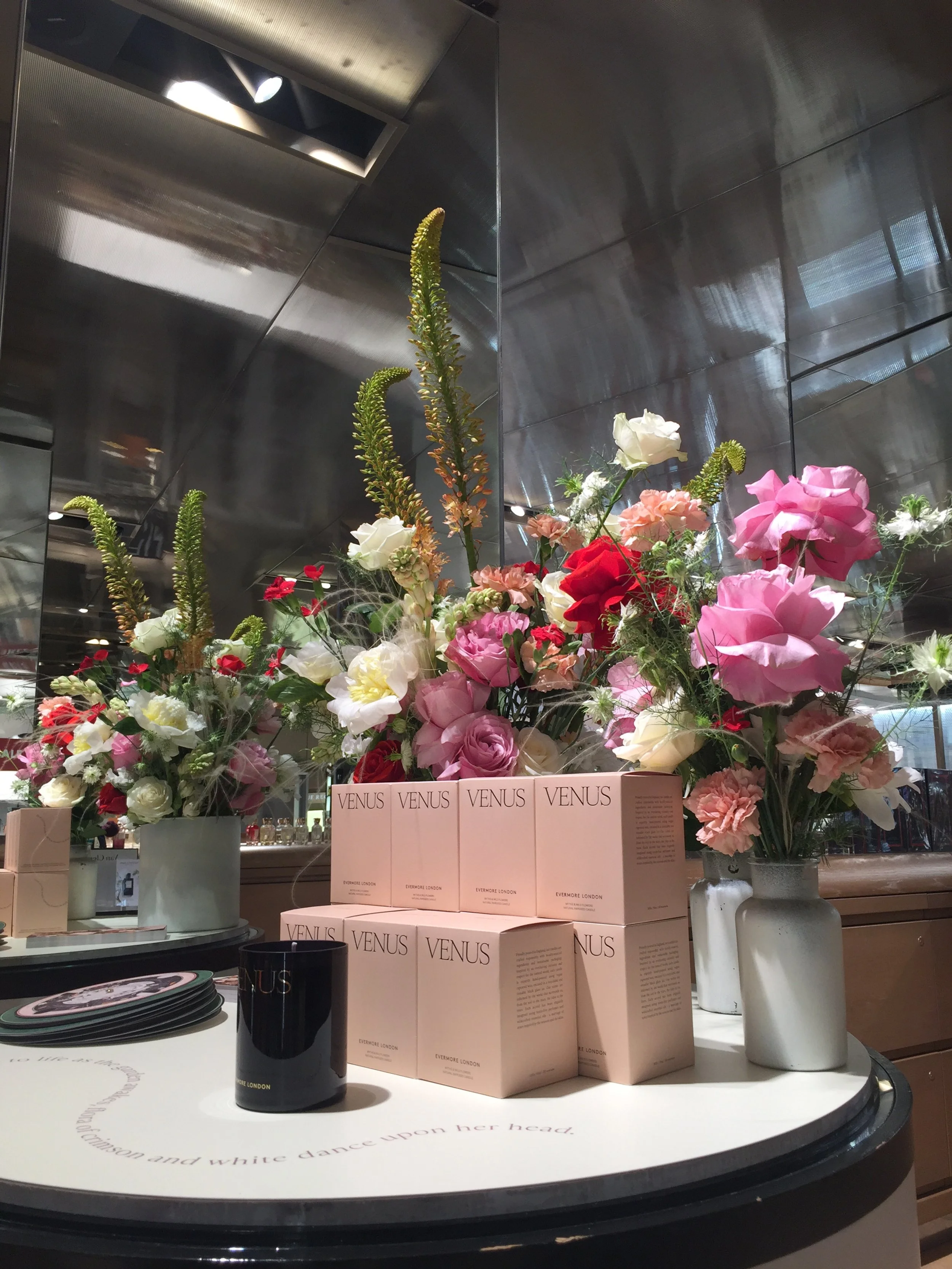 We were asked to create fresh flower arrangements that reflected the campaign for Evermore’s new candle ‘Venus’. Flowers. were changed weekly throughout the installation to ensure the flowers remained fresh and vibrant. Commissioned by Evermore, July 2021.